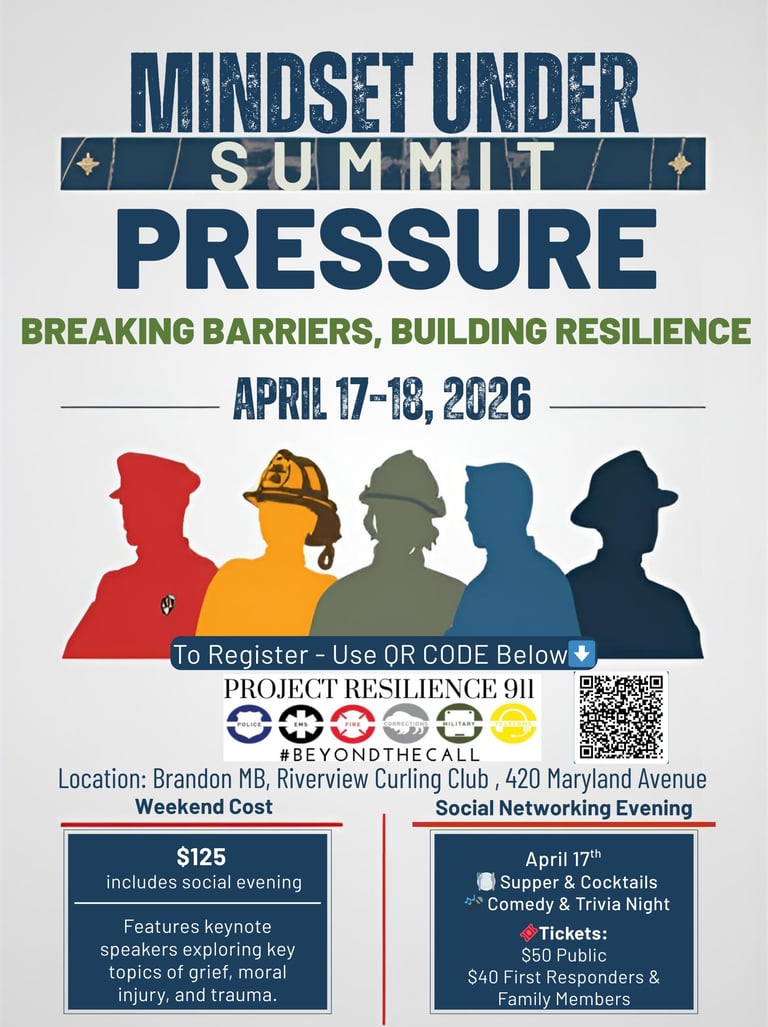 A two-day summit for first responders, frontline workers, military personnel, and families focused on trauma, moral injury, grief, and resilience. Featuring Garvin Pinette, Dr. Lorraine Smith-MacDonald, and Three Wyndi’s Healing. Includes a social networking evening on April 17.